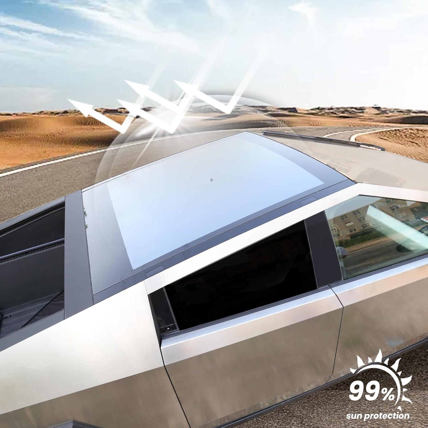 Roof Sun Shade for Tesla Cybertruck 2024 [Nano Ice-Crystal Coatings] Heat Insulation Foldable Glass Roof Sunshade for Cybertruck Accessories.(Roof Sun Shade)